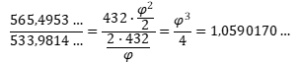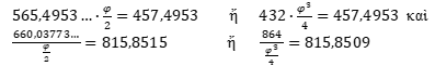 432,00∙φ=698,9907… καὶ 864/φ=533,9814…
