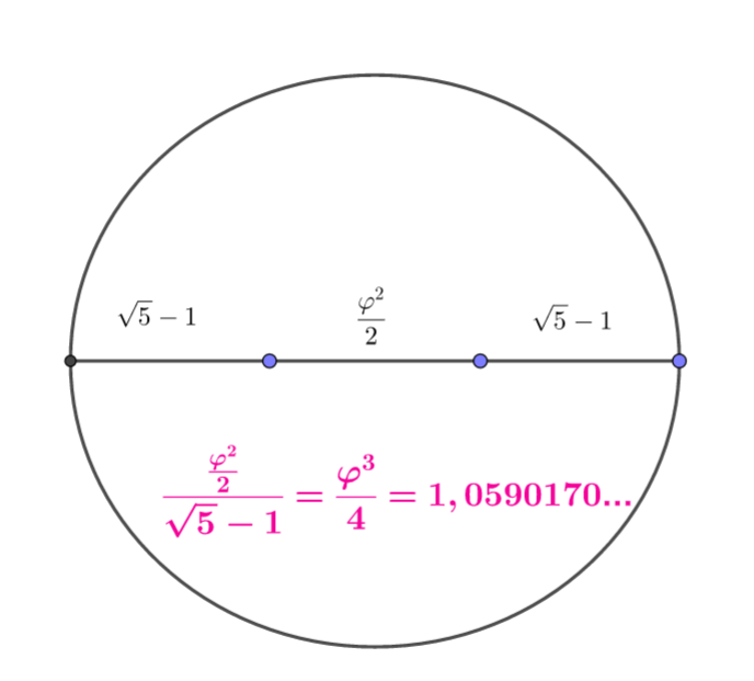 Οἱ λόγοι μᾶς προτρέπουν σὲ ἔλλειψη, ὅπου ἐὰν ἡ ἑστιακὴ της ἀπόσταση εἶναι: 1,309…=φ2/2 , τότε ἡ ἀπόσταση τῆς κάθε ἑστίας ἀπὸ τὴν κοντινότερη ἄκρη τοῦ μεγάλου ἄξονα θὰ εἶναι ἴση μὲ 1,236…=√5-1.