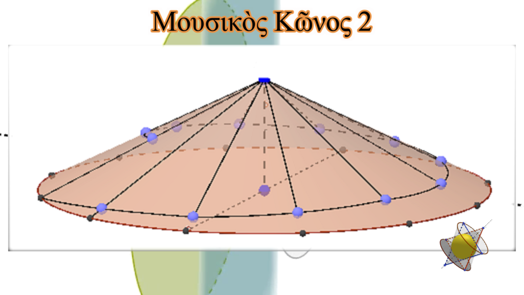 Ἐὰν τώρα περιστρέψουμε τὸ τρίγωνο Α΄Δ΄Β΄ γύρω ἀπὸ τὸν ἄξονα Α΄Δ΄, θὰ προκύψει ἕνας νέος κῶνος. Ἡ πλευρὰ αὐτοῦ θὰ εἶναι διπλάσια τοῦ ἀρχικοῦ κώνου, ὁπότε, σὲ ἀναλογία μὲ τὸν ἀρχικό, σὰν μουσικὸς κῶνος θὰ μποροῦσε νὰ παράγει τὴν ἴδια μουσικὴ κλίμακα, ἀλλὰ κατὰ μία ὀκτάβα χαμηλότερα. Θὰ εἶναι δηλαδὴ ἕνας μουσικὸς κῶνος ἀπόλυτα συμβατὸς μὲ τὸν ἀρχικό.