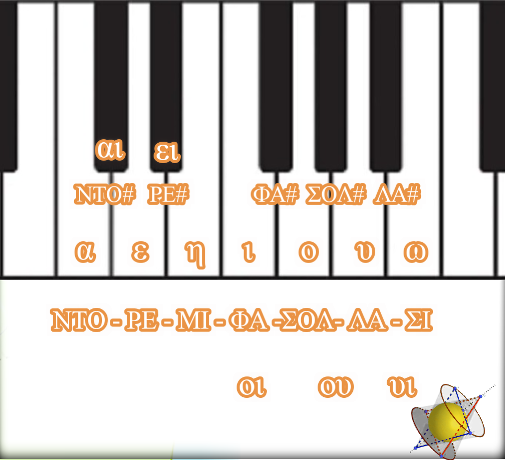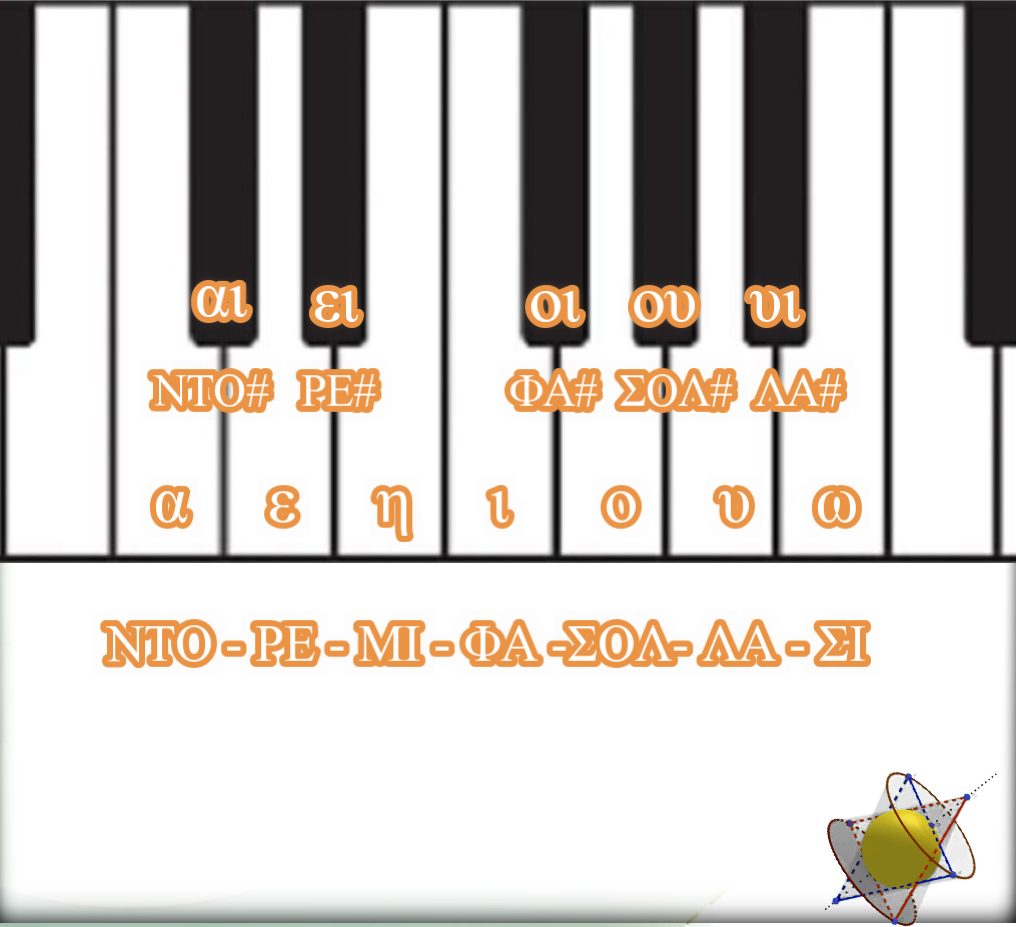 Τώρα ποὺ μᾶς ἔγινε πλήρως κατανοητὸς ὁ μηχανισμὸς μὲ τὸν ὁποῖο ἀντιστοιχοῦμε τὰ δίψηφα φωνήεντα μὲ τὶς διέσεις, προχωροῦμε γιὰ νὰ ἀντιστοιχίσουμε τὸ οι μὲ τὴ Φά#, τὸ ου μὲ τὴ Σὸλ# καὶ τὸ υι μὲ τὴ Λά#.