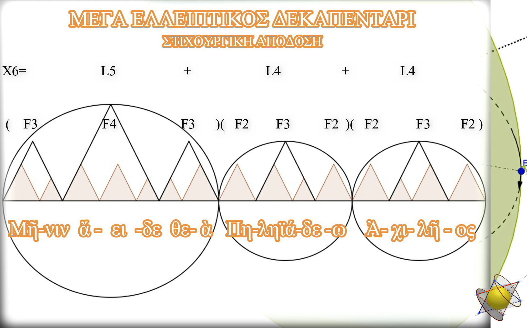 Τὰ τέσσερα σημεῖα, τὰ ὁποῖα χαρακτηρίζουν τὴν μεγάλη ἔλλειψη, δηλαδὴ τὰ δύο ἄκρα της καὶ οἱ δύο ἑστίες της, εἶναι τὰ τέσσερα σημεῖα τὰ ὁποῖα θὰ τονίζουν τὸν ρυθμὸ καὶ τὰ ὁποῖα θὰ ἐπαναλαμβάνονται σὲ κάθε νέο μέτρο, σὲ κάθε ἑπόμενο στίχο.