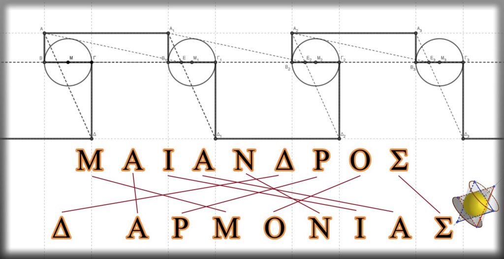 Καὶ κάτι ἀκόμη. Μὲ ἀναγραμματισμὸ τῆς λέξης ΜΑΙΑΝΔΡΟΣ, κάτι ποὺ συνηθίζονταν στὴν ἀρχαιότητα, προκύπτει ὅπως φαίνεται ἡ φράση Δ ΑΡΜΟΝΙΑΣ. Ἂν τὸ γράμμα Δ ἐδῶ δηλώνει τὴ λέξη ΔΙΑ δηλαδὴ τρόπο, μέσον κλπ. τότε ἡ ἴδια ἡ λέξη ΜΑΙΑΝΔΡΟΣ ἀφήνει νὰ ἐννοηθεῖ ὅτι διὰ μέσου τῆς ἁρμονίας … Μπορεῖ νὰ μὴ σημαίνει τίποτα, ἀλλὰ μπορεῖ νὰ σημαίνει καὶ τὰ πάντα. Σίγουρα ἀξίζει νὰ δεχθοῦμε τὴν προτροπὴ τῆς ἴδιας τῆς λέξης γιὰ διερεύνηση καὶ ὄχι μόνο σὲ μαθηματικὸ ἢ γεωμετρικὸ ἐπίπεδο.
