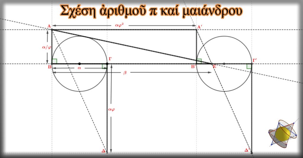 Ἐξελίσσουμε τὸ προηγούμενο σχέδιο κατασκευάζοντας τὸ εὐθύγραμμο τμῆμα ΓΔ=αφ κάθετα στὸ ΒΓ, ὅπως κάναμε καὶ στὸν τετραγωνισμὸ τοῦ κύκλου. Ἀπὸ τὸ σημεῖο Α φέρνουμε εὐθεία κάθετη στὸ ΑΒ ὅπου καὶ παίρνουμε εὐθύγραμμο τμῆμα ΑΑ΄=αφ². Στὴ συνέχεια μὲ ἀφετηρία τὸ σημεῖο Α΄ ἐπαναλαμβάνουμε τὴν ἴδια μαιανδρική κατασκευὴ μὲ τὰ κάθετα μεταξὺ τοὺς καὶ μὲ ἀναλογίες φ εὐθύγραμμα τμήματα Α΄Β΄, ´ô καὶ Γ΄Δ΄.