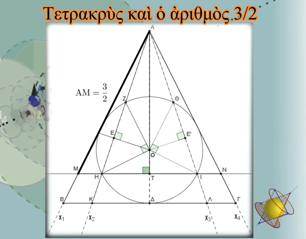 Ἐπίσης, μὲ τὴ βοήθεια καὶ τῶν δύο ἄλλων ἀκτίνων τῆς Τετρακτύος, ἐμφανίζεται ὁ μουσικὸς λόγος ΑΠ=ΠΜ=3/4, ὁ ὁποῖος εὔκολα ἀποδεικνύεται (ἐδῶ), ὅπως καὶ ὁ λόγος τῆς δεύτερης ἁρμονικῆς  ΑΜ/ΑΠ=2/1.