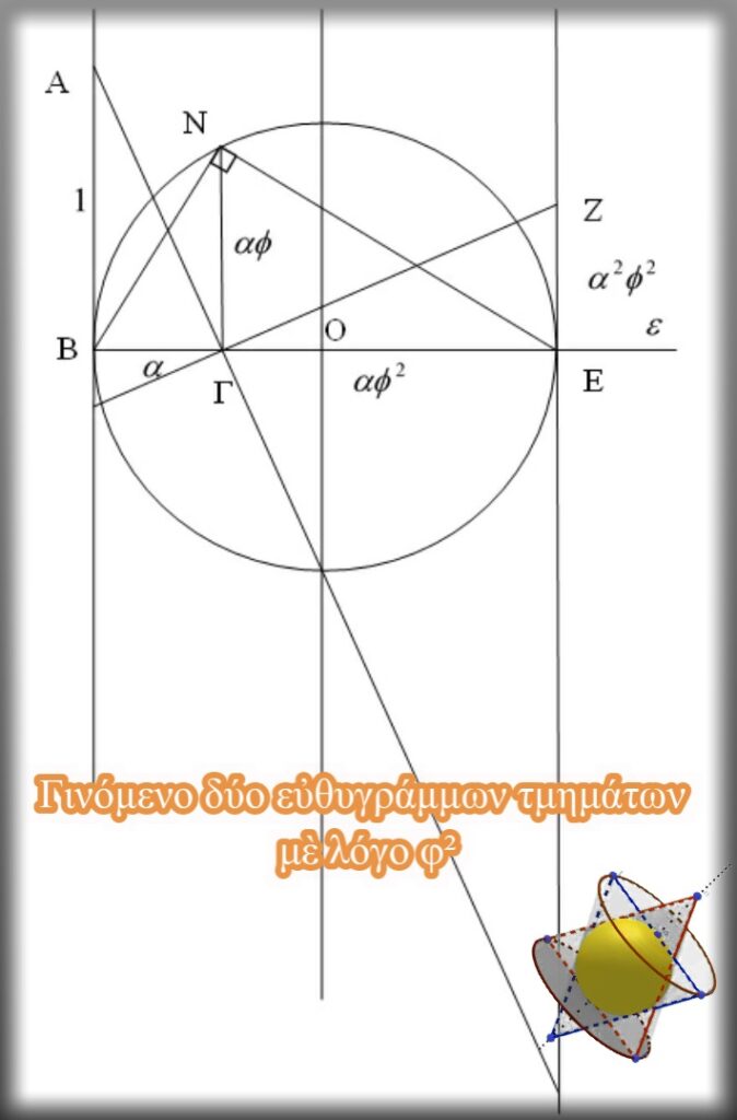 Ἂν τὰ ΒΓ καὶ ΓΕ εὐθύγραμμα τμήματα εἶναι συνεχόμενα σὲ εὐθεία ε καὶ τὸ ΒΑ εὐθύγραμμο τμῆμα εἶναι κάθετο στὴν εὐθεία ε καὶ ἴσο μὲ τὴν μονάδα, τότε τὸ εὐθύγραμμο τμῆμα ΕΖ ποὺ προκύπτει μὲ βάση τὸν γεωμετρικὸ μηχανισμὸ εὕρεσης τοῦ γινομένου δύο εὐθυγράμμων τμημάτων («ΓΕΩΜΕΤΡΙΚΕΣ ΚΑΤΑΣΚΕΥΕΣ ΣΤΟ Πὶ ΚΑΙ Φὶ» κεφ.1), θὰ ἰσοῦται μὲ τὸ γινόμενο τῶν ΒΓ καὶ ΓΕ δηλαδὴ : ΕΖ=ΒΓ·ΓΕ=α(αφ²)=(αφ)²