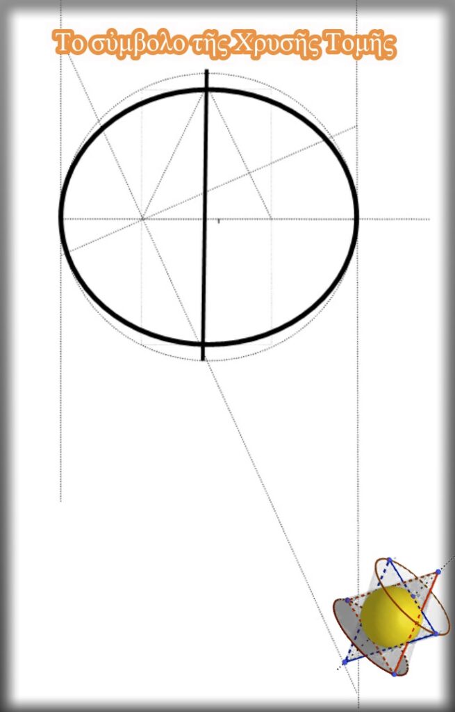 Μὲ ἁπλὴ παρατήρηση βλέπουμε τὴν περιφέρεια τῆς ἔλλειψης μαζὶ μὲ τὴν κάθετη διάμετρο τοῦ κύκλου νὰ σχηματίζουν τὸ γράμμα Φ. Εἶναι τὸ ἴδιο τὸ γράμμα, τὸ ὁποῖο σὰν σύμβολο περιέχει μέσα του τὴν ἀπάντηση γιὰ τὶς μοναδικὲς ἰδιότητες του.