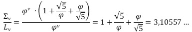 Στὸν λόγο λ ἀποδεδειγμένα φτάσαμε μὲ τὴ χρήση τῶν τριῶν θυγατρικῶν σειρῶν τῆς ἀκολουθίας Φ, τῶν ὁποίων οἱ ὅροι τους παίρνουν μόνο ἀκέραιες τιμές, δηλαδὴ ἄμεσα μετρήσιμες, ἀλλὰ καὶ τῆς ἀκολουθίας Φ τῆς ὁποίας οἱ ὅροι της ἔχουν ἄρρητες τιμές. Ἀντίστοιχα, ὁ λόγος πφ/π, ποὺ σχεδὸν ταυτίζεται μὲ τὸν προηγούμενο λόγο λ, προέκυψε ἀπὸ τὴ σύγκριση τοῦ γνωστοῦ ἀριθμοῦ π, ἀποτέλεσμα μαθηματικῶν προσεγγίσεων στὸν τρισδιάστατο μετρήσιμο χῶρο ὅπου κινούμαστε, καὶ τοῦ ἄρρητου ἀριθμοῦ πφ, δηλαδὴ τῆς τιμῆς τοῦ ἀριθμοῦ π ποὺ προκύπτει μὲ τὴ χρήση τῆς χρυσῆς ἀναλογίας ποὺ ἡ Φύση χρησιμοποιεῖ σὲ ὁποιαδήποτε κλίμακα, ἀκόμα καὶ σὲ συμπαντικὲς ἐφαρμογὲς ὅπου εἶναι πιὸ ἐμφανὴς ἡ ὕπαρξη τῶν τεσσάρων διαστάσεων.