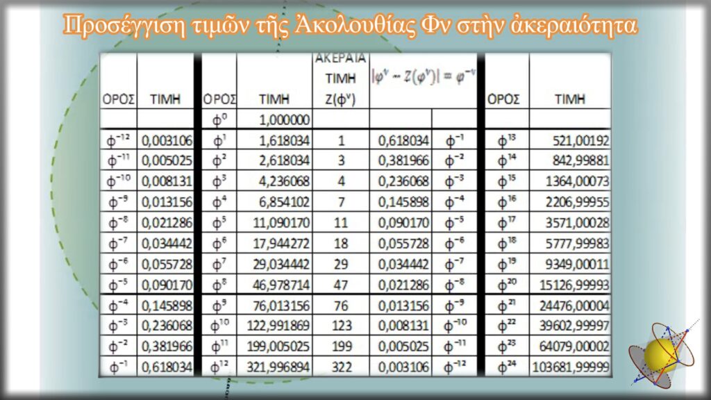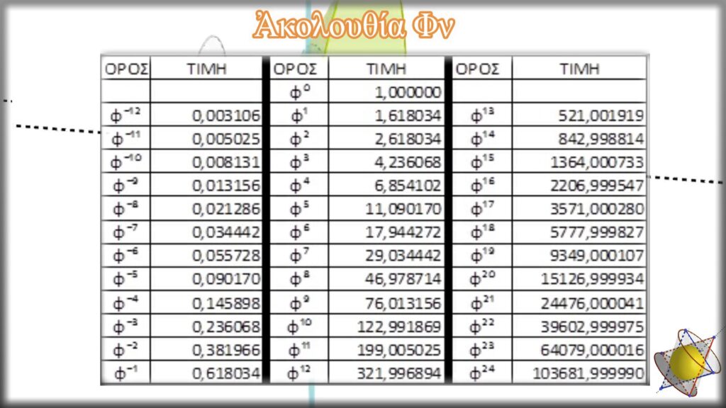 Ἡ ἀκολουθία τοῦ ἀριθμοῦ φ εἶναι μία γεωμετρικὴ πρόοδος μὲ λόγο λ τὸν ἀριθμὸ φ, ὅπου: